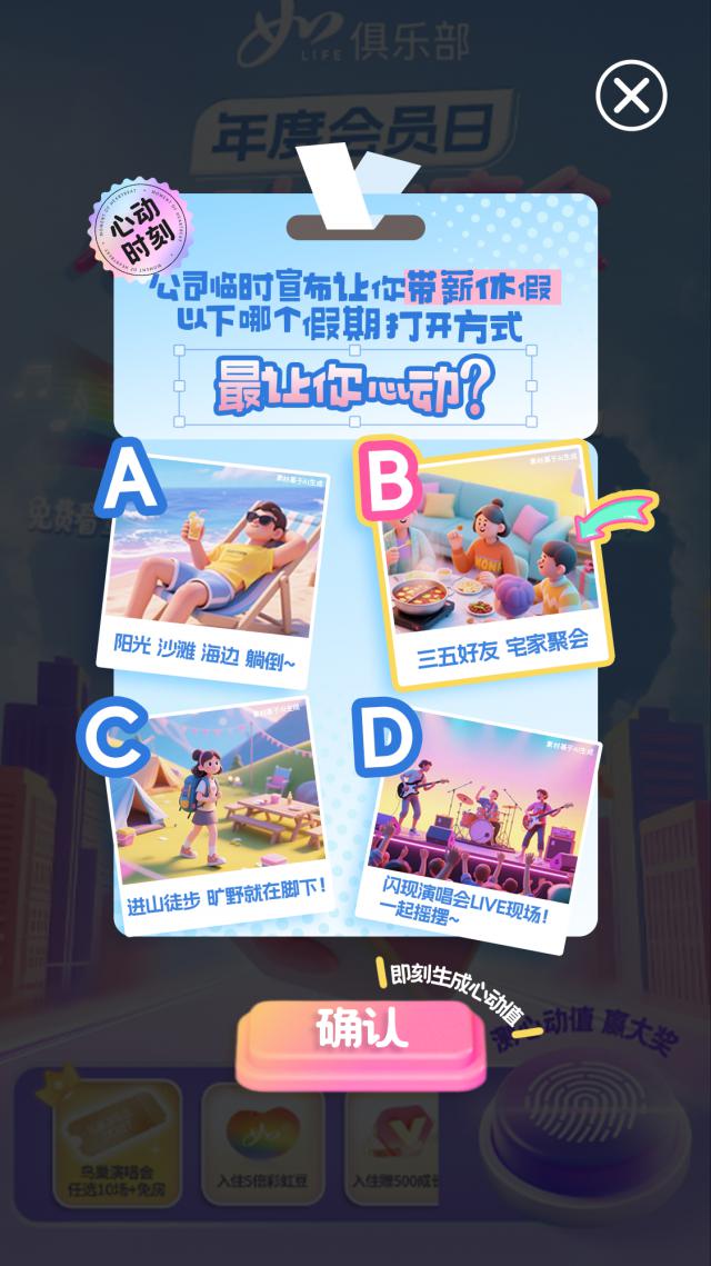 第一次旅行如家通过有趣的互动打开年轻用户心态解码测试,构建数据驱动的快乐定制闭环。年度会员日线“ AI 盲盒里的“带薪假期,清空岛屿,平躺在家里,徒步上山和特种部队旅行,哪一个让你更兴奋?”震撼年轻人对理想假期的想象,为权益提升锚定方向,促进会员体验从标准化演变为个性化。