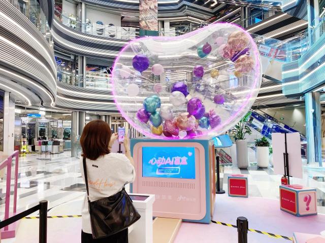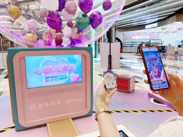 在北京王府井喜悦购物中心,冷空气和年轻人的热浪在 6 月 24 一天的激烈碰撞。当旅行如家高达时 3.5 米、占地约 26 方"心动 AI 盲盒“亮起霓虹灯,吸引了不少年轻顾客。设备的核心玩法很简单:参与者把手放在感应区,屏幕上即时“心跳指数”会得到相应的心跳福利海报,扫码进入活动页面打开心跳。 AI 盲盒,抽奖获得年度会员日福利。这种充满仪式感和趣味性的线下互动,巧妙地引流了线上会员活动。