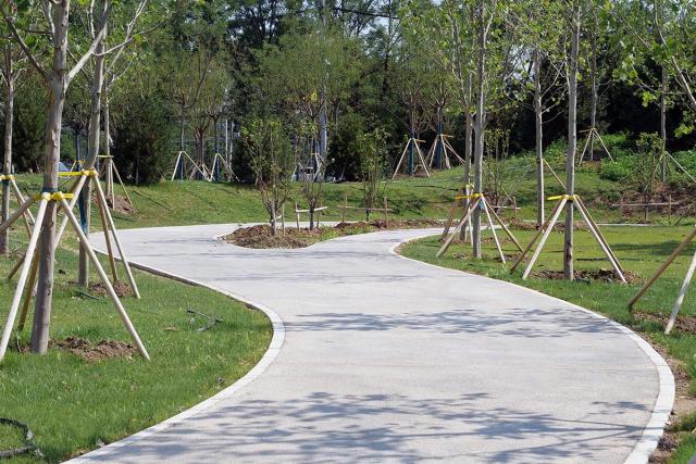 公园绿化除了硬件设施齐全外,也是“优秀”的。在公园建设过程中,首选本土树种,保持乔灌草比例合理,打造本土生态群落。植物配置可以为周边学校提供自然教育场所,兼顾生态效益和科普功能。同时,运用绿色环保材料、节水喷灌等设计手法,打造“节约型”公园。