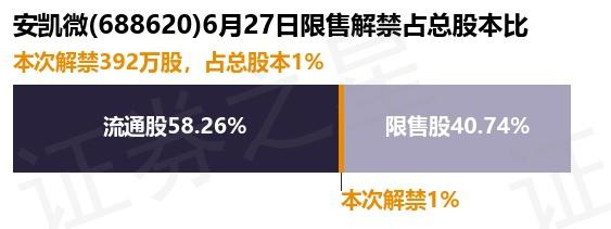 6月27日,安凯微(688620)392万股限售股将解禁,占总股本的1%。