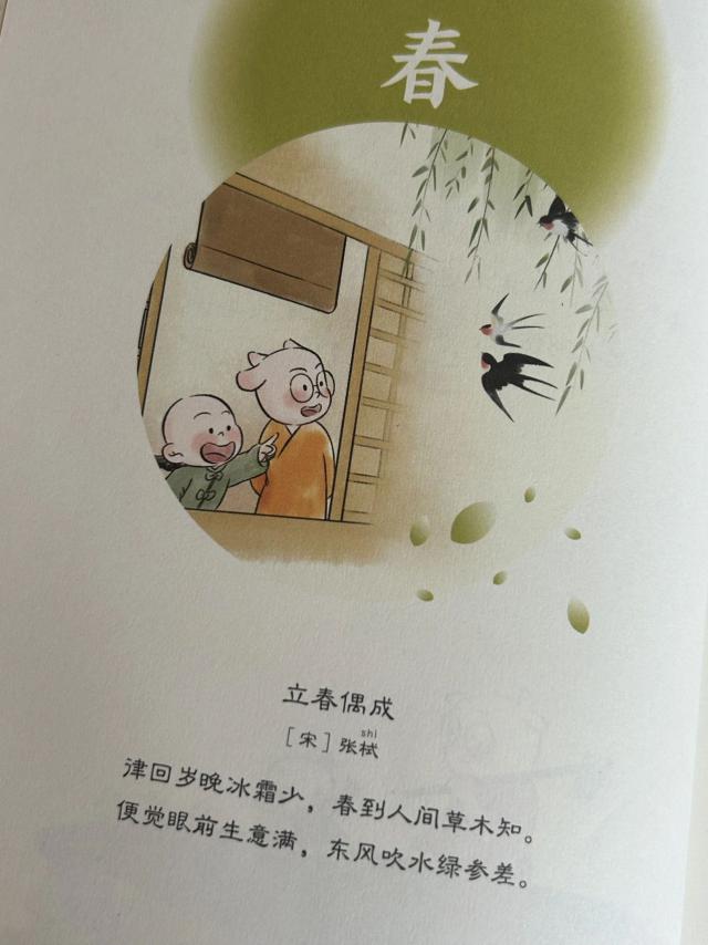 例如,当春分来临时,书中引用了“立春偶成”这个词:“春天对世界上的植被有所了解”,生动地展现了春分的场景。这些内容不仅可以丰富孩子的知识储备,还可以让他们对自然现象有更敏锐的洞察力。