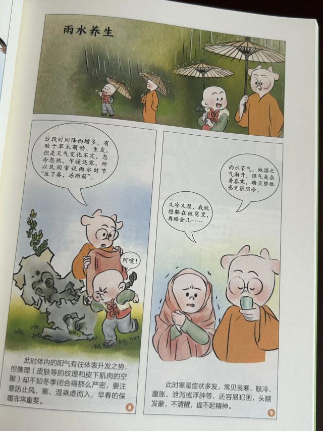 比如春天如何保养头发,春分如何保养肝脏,夏天如何保养内火等。,书中会以漫画的形式进行讲解,并给出一些小技巧和季节性食材推荐。