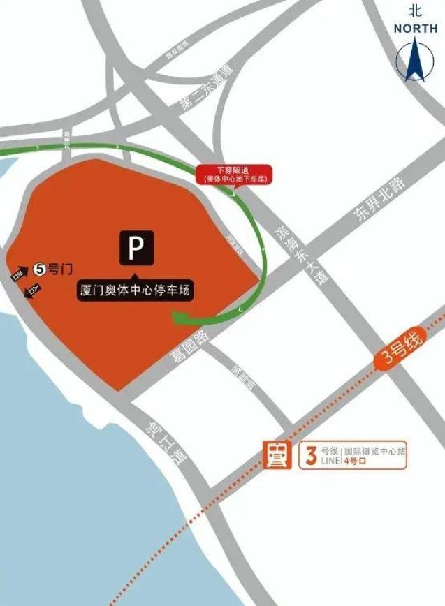 2.奥体中心地下停车场:社会车辆从滨海东大道地下入口进入地下车库停车或从翔安南路、刘浦路、刘港路通过鸿江道5号门进入地下车库停车;退出时,根据引导,从奥体中心5号门和地下隧道鸿江道出口开车。