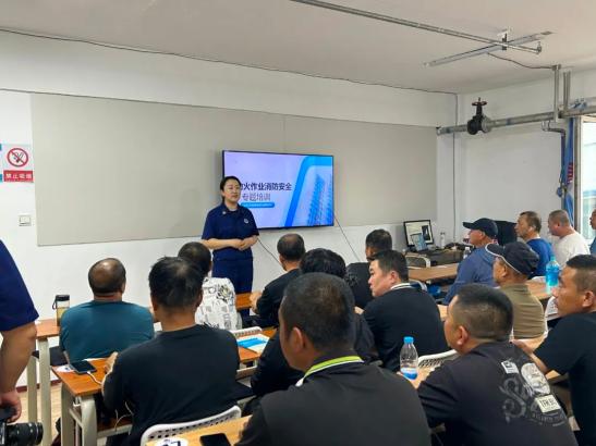 在培训现场,宣传员首先强调动火作业的规范标准。通过播放警示教育片,从源头控制、应急管理、责任落实等维度,以真实火灾事故案例为切入点,深入分析事故原因和教训,为参与者敲响安全警钟。与此同时,宣传员围绕火灾作业的火灾风险, 动火作业“ 十不准”和 “六必须” 详细说明,要求参与者充分认识消防安全的重要性,积极提高消防安全意识,积极开展火灾隐患自查自纠、消防安全培训教育活动,切实提高自我防护能力,筑牢电焊工作消防安全防线。