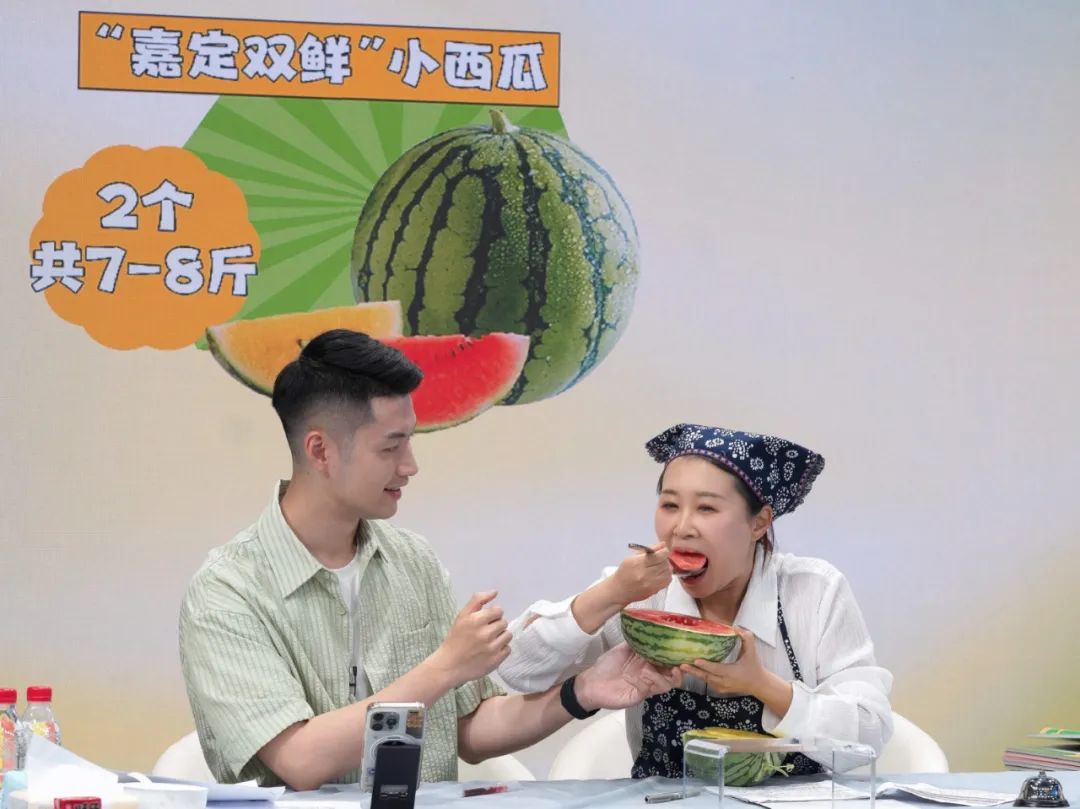 “嘉定双鲜”分别是‘红小鲜’和‘黄小鲜’,‘红小鲜’酥脆可口,‘黄小鲜’鲜嫩多汁……”从“嘉定双鲜”西瓜到“青霞66”嘉定小番茄,再到梨树林里被小嘉记者和主持团队追捕的“梨园养鸡”,再到“嘉味”助农直播间,嘉定的季节性特色是美味的。带货主播用嘉定方言推荐嘉定当地优质农产品,靠近当地口音,拉近与客户的距离,推动“文化、旅游、商业、商业、体育、农民”在媒体的力量下协同发展。首次直播吸引了16,000名观众,营业额超过700单。
