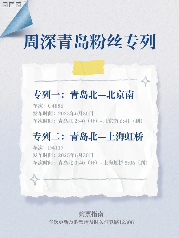 据报道,2个班次分别是2025年6月30日青岛北-北京南的G4886和青岛北-上海虹桥的D4117。