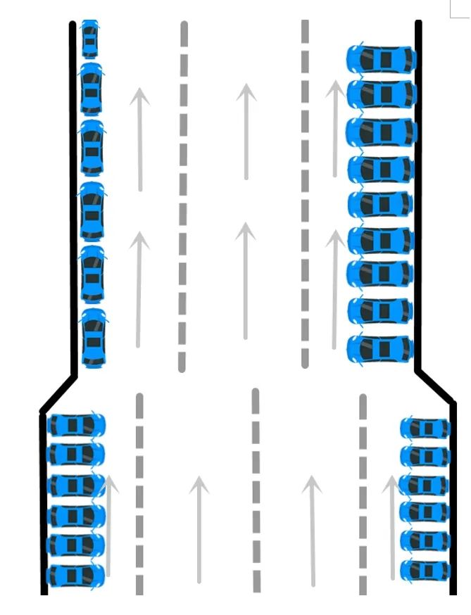(二)敦信路(火炬路向北)东西两侧用于社会车辆停放(靠路边一排车到外,靠中间隔离花坛一排停放)。