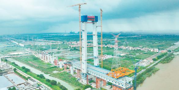 近日,记者从厦深铁路广东有限公司获悉,深江高铁洪奇沥水路公铁大桥由公司建设、中铁大桥局建设、铁四院设计,成功完成重要节点——南沙侧49号主塔上梁混凝土首次浇筑,意味着主塔高度正式突破200米,达到203米。