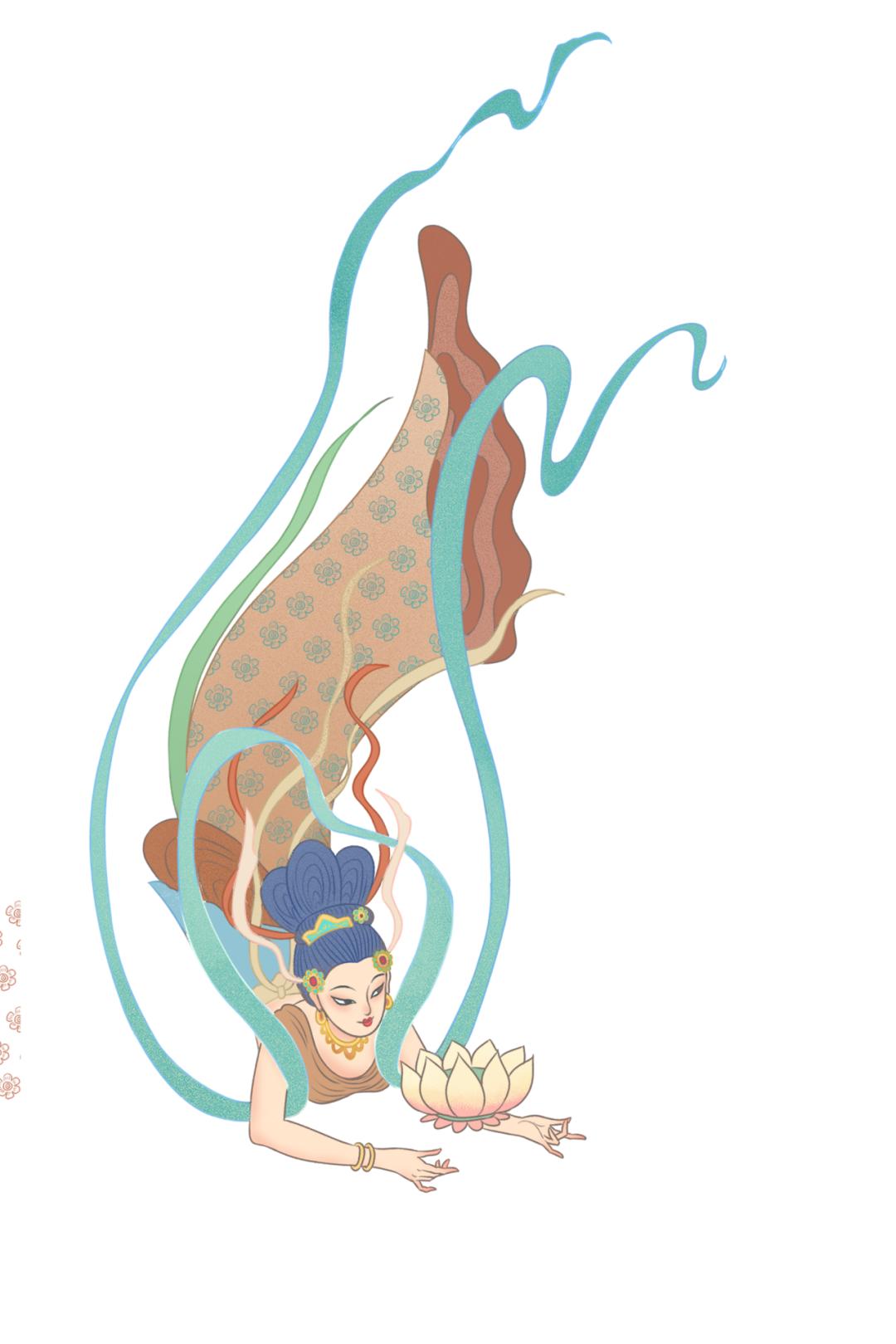 本次展览以“壁画”、“服装”、“图案”为经纬度,解构了敦煌艺术中的服装美学。在这里,吴带当风的优雅凝聚成天衣飞扬的绸缎褶皱,宝相团花的优雅演变成经纬交织的织锦纹章,为人们的眉毛提供绿色的花朵,再现长安胭脂的千年魅力。石窟里的衣服飞来飞去,纹章运转,不仅诉说着古人对美的虔诚追求,也见证了丝绸之路上多元血脉的共生共荣。