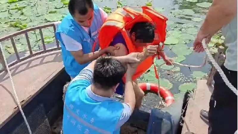 6月23日下午2时许,北京市顺义区水务局巡逻人员在潮白河沿岸进行常规巡逻时,发现一位大妈在河中央的荷叶丛中乘凉。虽然大妈穿着两件救生衣,但当时的水位已经接近她的脖子,情况非常危险。