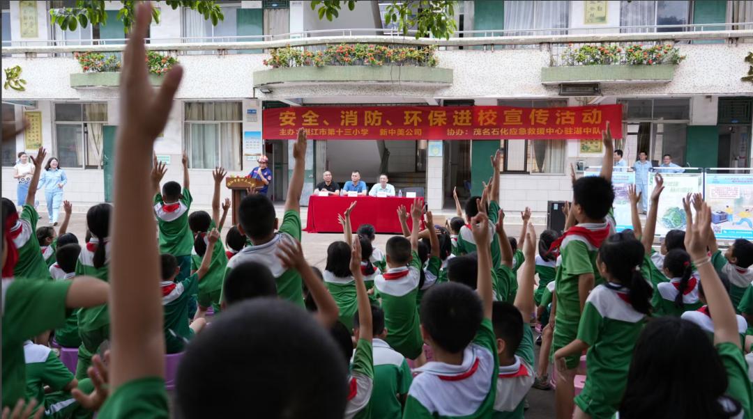 6月19日下午,茂名石化队湛江中队在湛江十三小学举办“安全、消防、环保宣传活动”,520余名师生参加。活动期间,湛江中队宣传队员系统讲解了校园和家庭防火知识、逃生自救方式等。,结合多年的救援经验,通过趣味问答、案例分析、实践经验等多种形式。活动结束后,学校对湛江中队实施的活动给予了高度认可和好评。