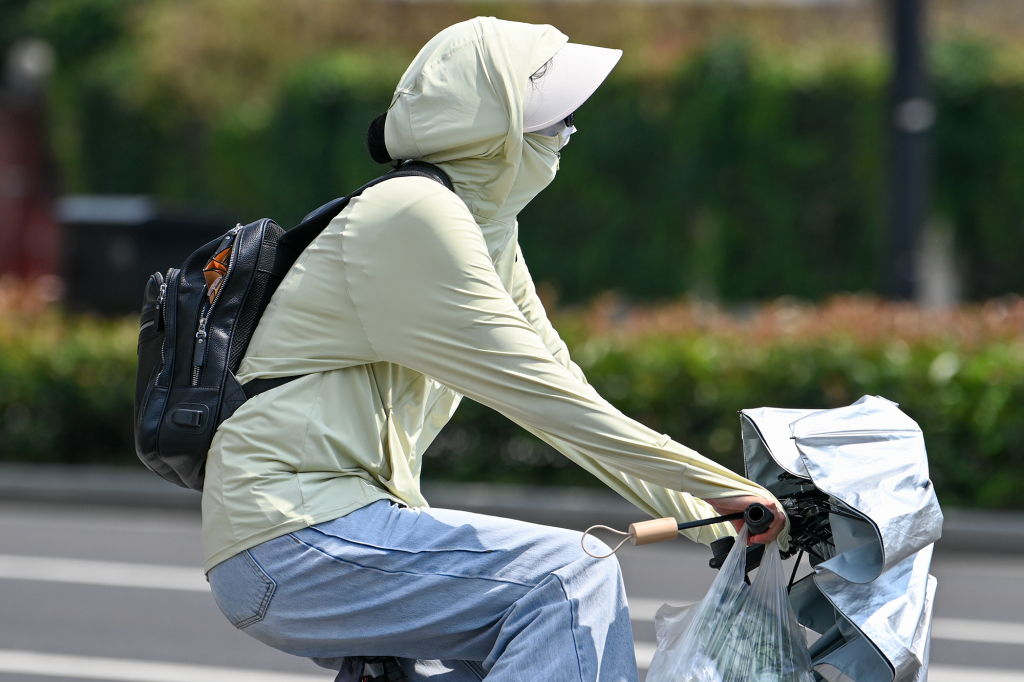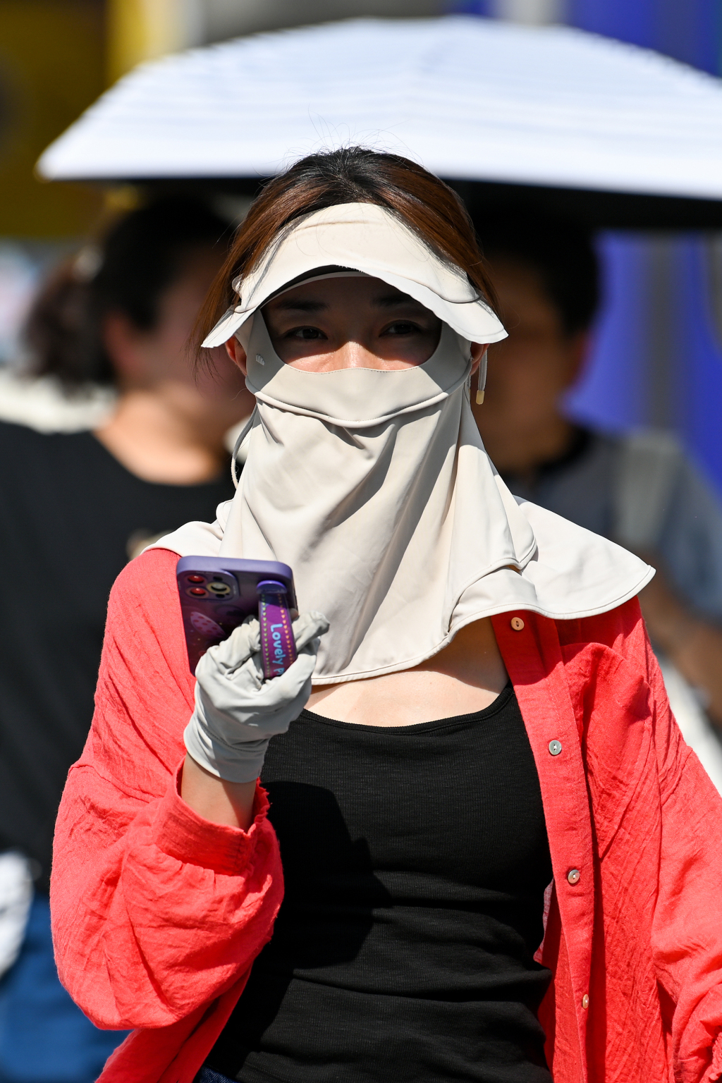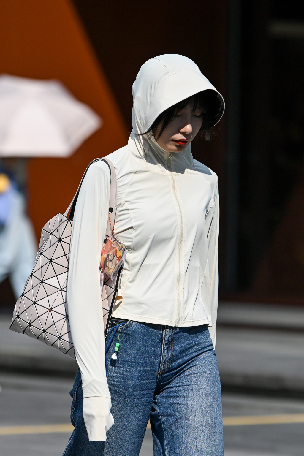 2025年6月27日,上海市民穿着防晒服出行。报纸记者 朱伟辉 图
