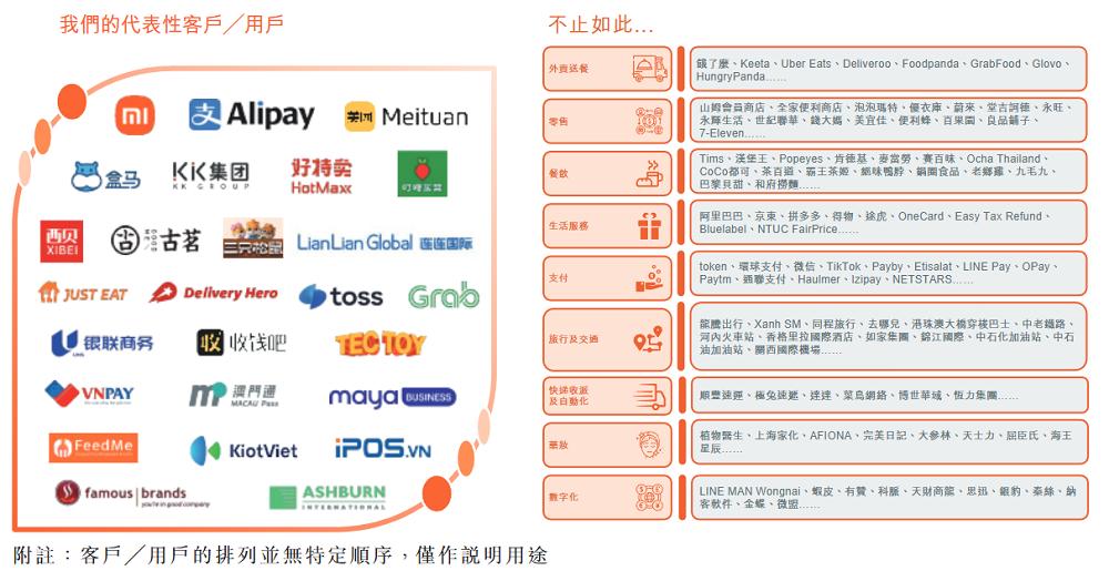 商米科技的主要客户包括技术经销商、外卖平台、移动支付企业等。而且它的用户范围更广,包括许多认知度较高的国内餐饮、零售品牌,如西贝、好促销、古茶等。Keeta(美团海外版)是国际海外外卖平台、Uber Eats、Grab等都是他们的客户。另外,商米科技的主要投资方美团、蚂蚁集团、小米等也是其客户或客户。