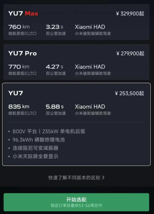 目前 YU 7 最快的专业版锁单之后 53-56 每周交付,顶配 Max 交付时间为 33-36 周,至少也要 8 个月。