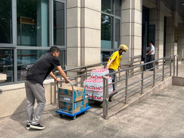 借着休息日,蒋海龙自己掏钱买的。 10 箱矿泉水和 5 箱式饮料送到工会栈。蒋海龙是许多走过城市大街小巷的外卖从业者之一。在工作中,他深刻体会到户外工作者的困难和困难,尤其是在炎热的夏天,一瓶清凉的饮用水成为难得的安慰。