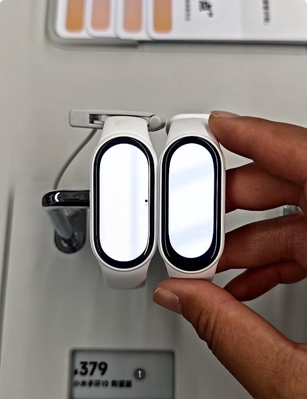 今日周末,不少网友晒出了自己在店内实际体验对比图,小米手环 10 和小米手环 9 把它们放在一起可以清楚地感知到巨大的差异,甚至不像一个时代的产物。