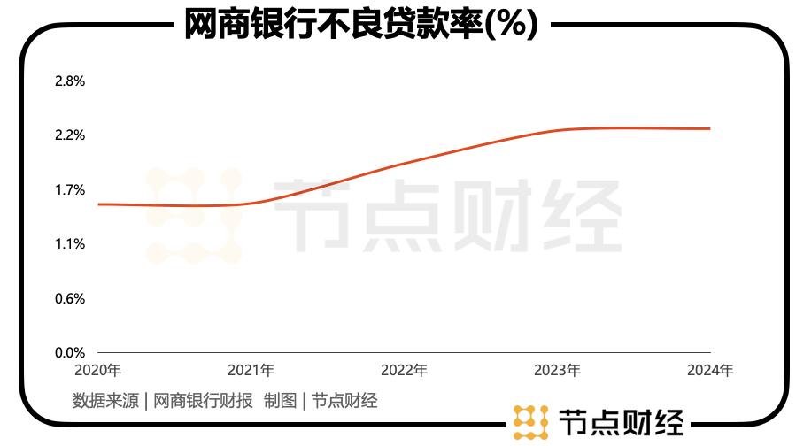 财务报告显示,截至2021年底、2022年底、2023年底,网商银行的不良贷款率分别为1.53%。、1.94%、2.28%,并且继续上升到2024年底的2.3%。