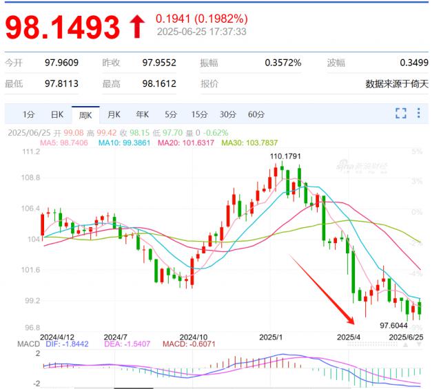 到目前为止,美元指数已经下跌了大概。 8%,从最高 110 跌至 98,创造一个有记录的年度最糟糕的开始。