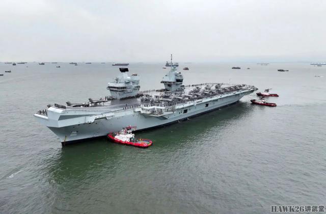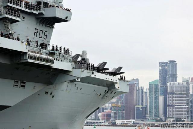 “威尔士亲王”号航母靠近港口。