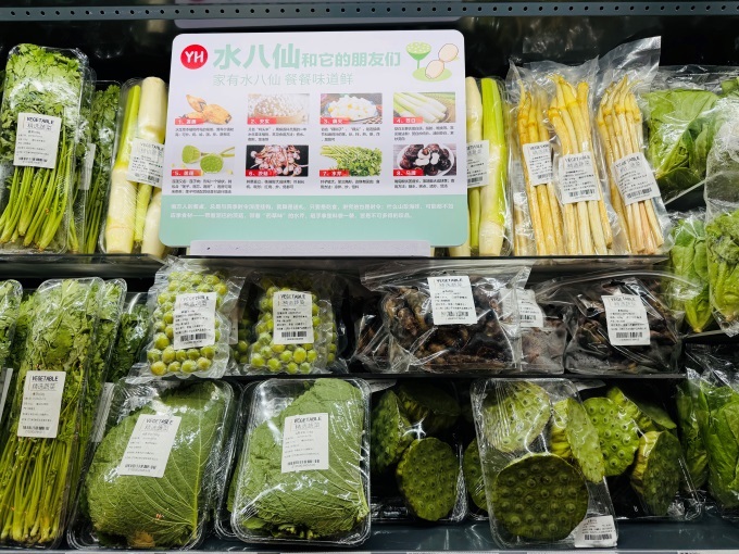 走进商店,生鲜区的“全球美味”与当地特色齐舞。云岭各种有机蔬菜、新疆吊干杏、龙泉驿桃、洪湖莲藕等国内各地特色果蔬汇集在一起。