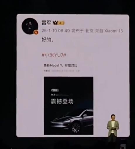 值得注意的是,在小米中, YU7 在新闻发布会前夕,雷军公开表示对此。 Model Y “挑战性言论”。
