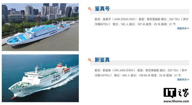 公开信息显示,“鉴真号”渠道的命名来源于唐代著名僧侣鉴真,是上海第一条也是目前唯一的中日客货航线。 1985 2008年“鉴真”轮首航日本至今,已完成大约出入境旅客运输。 32 人数,目前最新的第三代“鉴真号”(IT 世家注:新鉴真)"满载可载人 192 人类,载人的同时还可以装载集装箱,可装载 338 个 20 英寸标准集装箱,但由于疫情原因,后续船舶客运功能暂停,现在将正式恢复。
