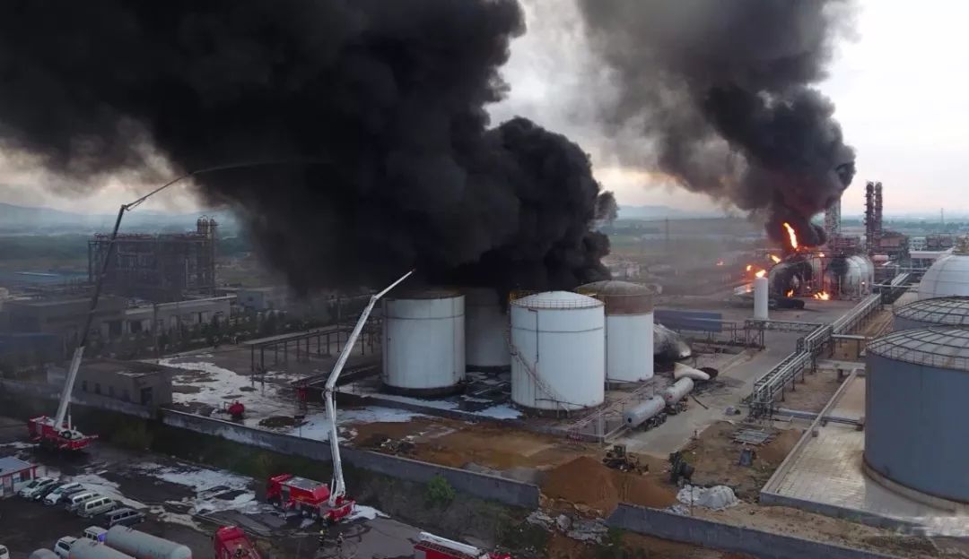 液化气泄漏区不断燃烧,导致泄漏车辆储罐和装卸区停放的其他运输车辆储罐爆炸。爆炸分解了车身和储罐,储罐遗骸等飞溅物击中了周边设施、物料管廊、液化气球罐、异辛烷储罐等。,导致两个液化气球罐泄漏燃烧,两个异辛烷储罐燃烧爆炸。