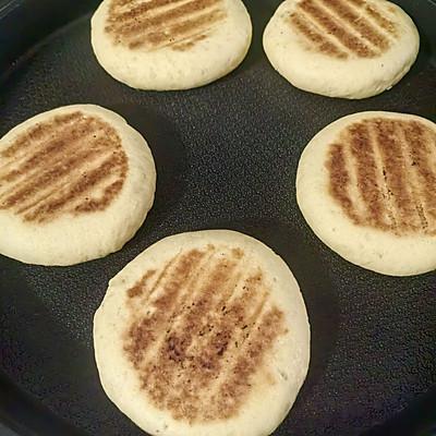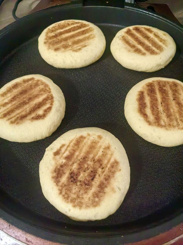7、均分 5 份,做成饼胚松弛十分钟,电饼铛两面烙熟,轻按回弹即可。