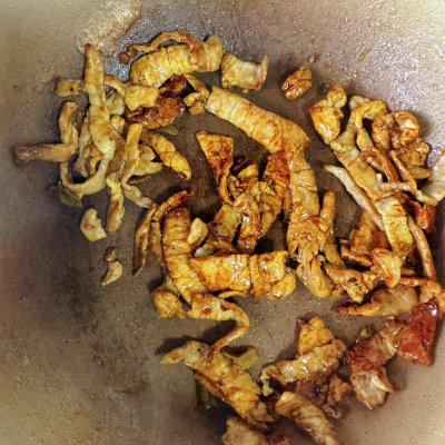 1、鸡蛋打散炒熟备用; 将热锅凉油放入肉片翻炒至变色,加入酱油、蒜末翻炒香味;