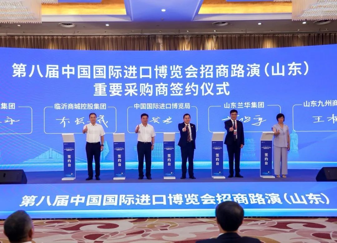 6月27日,第八届中国国际进口博览会(以下简称中国国际进口博览会)招商路演在中国国际进口博览会和山东省商务厅在临沂市举行。