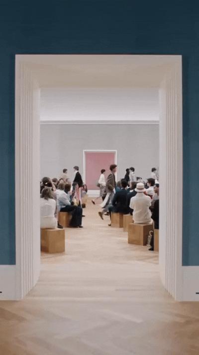 即使是品牌代言人在房间里整理出发前的服装(同样穿着秀场新品),也充满了文艺气息。