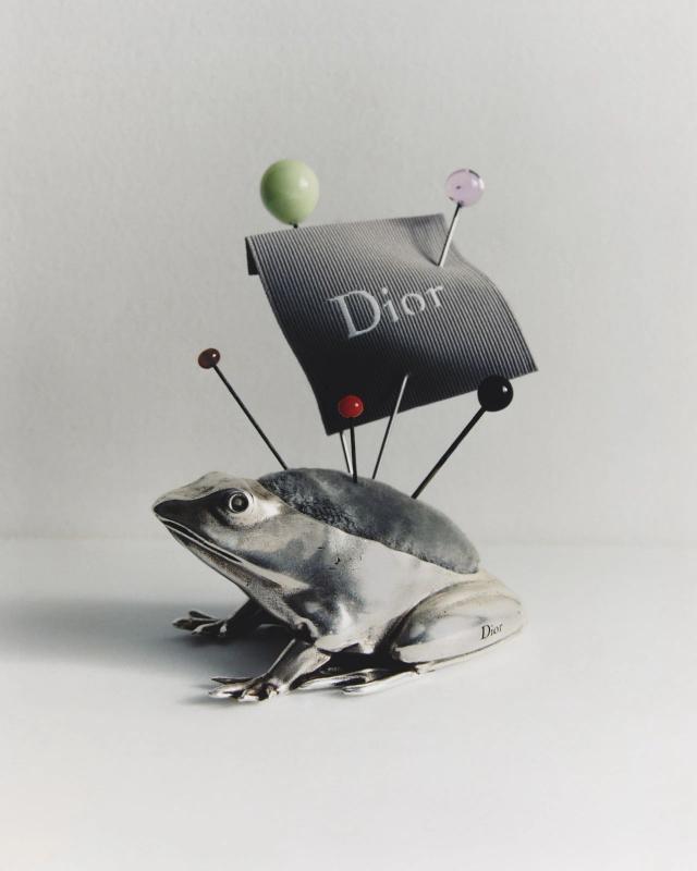青蛙形状的针垫,印有小说《德古拉》和《危险关系》封面的手袋,以及由瓷盘和鸡蛋组成的新闻发布会邀请函(这是 Jonathan Anderson 一件意外发现在品牌档案中的作品复制品)。