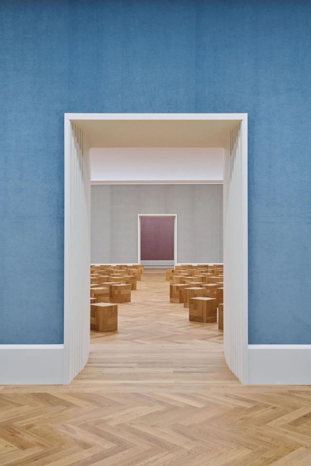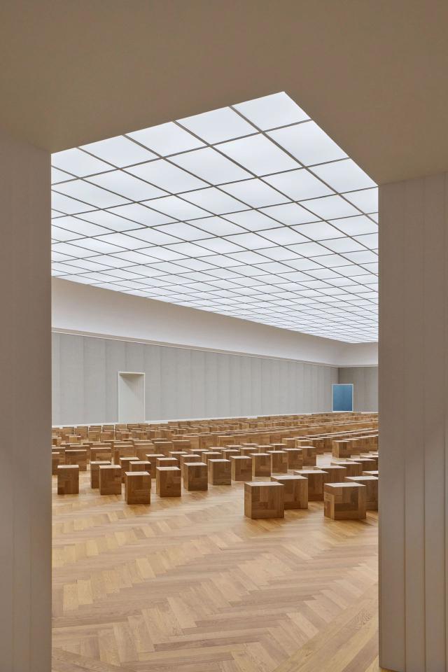展厅作为一个公共空间,600多位重要客人坐在木凳上,仿佛成了这场盛大艺术和服装仪式的守护者和参与者。布鲁斯是展览的背景音乐 · 斯普林斯汀(Bruce Springsteen)歌声开始时,就像一个预告或引言,这些元素也自然融入到这一季的系列造型中。