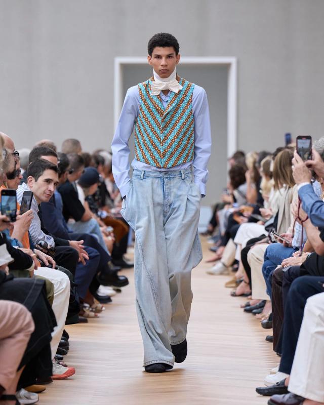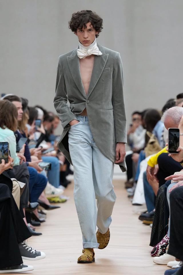 品牌设计总监 Jonathan Anderson 男装首秀共有 67 一个造型,试图在“着装的喜悦”中找到过去与当下的共鸣。