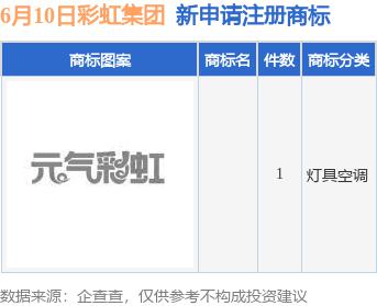 证券之星消息,根据天眼查 APP 数据显示,近日,成都彩虹电器(集团)有限公司新递交 1 商标申请。商标申请的详细信息如下: