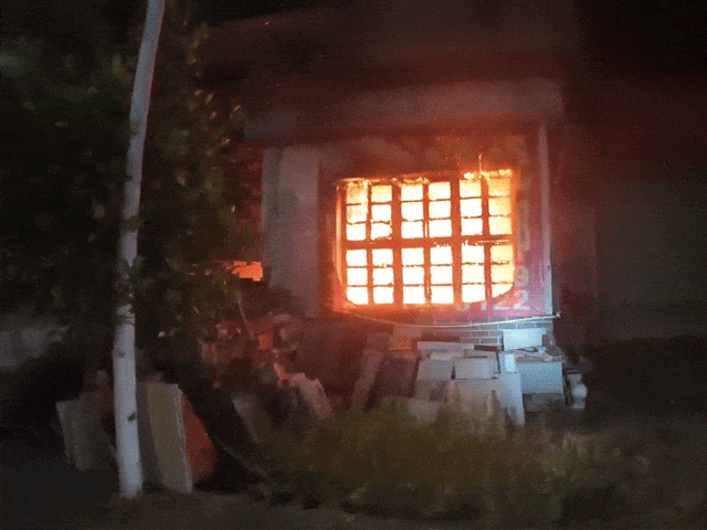 23时38分左右,该地重新发生火灾,一家地砖店起火。