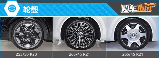 在轮毂方面,除顶配车型外,其他车型均标配。 20 英尺流影狂风轮毂, 255/50 R20 规格车胎。其中,后驱 Ultra、四驱 Ultra 以及后驱 Ultra 也可以选择顶配车型标配。 21 英尺穹宇多辐轮毂, 265/45 R21 规格车胎。另外,支持顶配车型 21 英尺六芒星驰轮毂的选择,视觉效果颇具“迈巴赫”感,同样匹配。 265/45 R21 规格车胎。