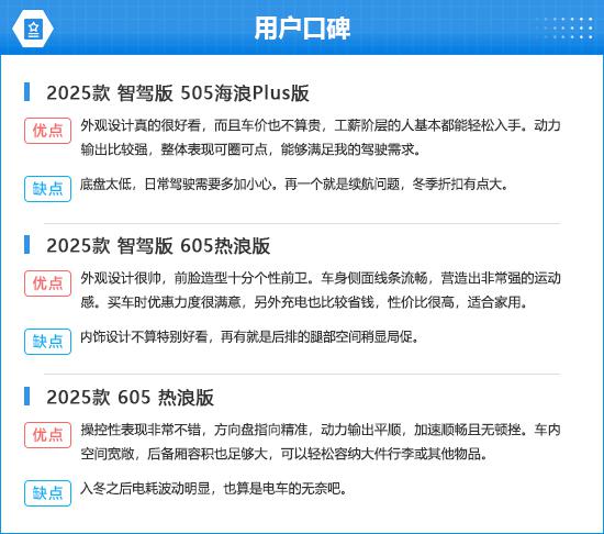 大多数消费者在用户口碑中, 2025 款海豹 06GT 外观设计和可操作性令人满意。但也有车主表示,这款车的续航里程还是有问题的,主要表现在冬季损坏明显。