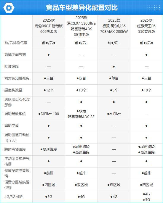 除车身长度受动感时尚的影响外,与同级竞品车型相比, GT 造型确实有点“卷”不动,2025 款海豹 06GT 整体表现可以说是相当出色。第一,动力参数和续航里程之间的平衡非常合适,然后是优秀的驾驶硬件和优秀的驾驶硬件。 DiPilot 100 辅助驾驶系统都是加分项,唯一的缺点就是它不支持城市路段的辅助驾驶。