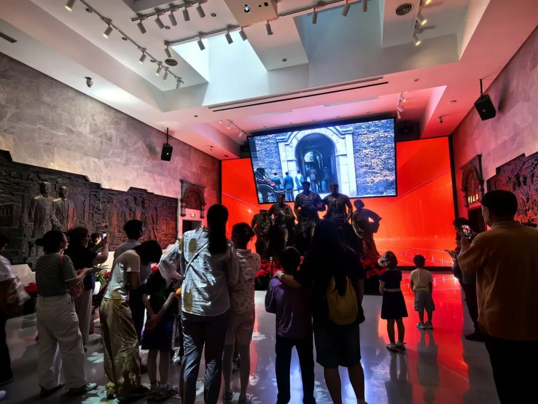 一路上,公交车变成了“移动课堂”,导游生动地讲述了红色的故事。行进过程中,公交车穿梭在申城的大街小巷,城市的美景让所有人都惊叹不已。来到上海博物馆的第一站,一群人跟着导游穿梭在“历史走廊”。上海历史时期的重大事件就像一个画轴慢慢展开,亲子家庭都被迷住了。