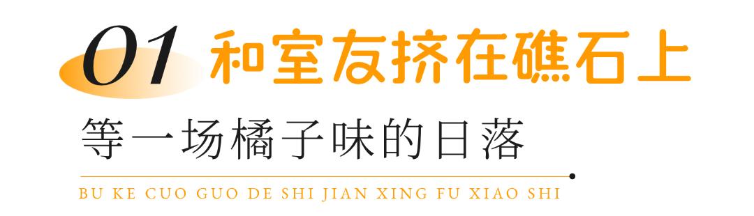 夕阳会把云染成橙色的汽水色,浪花会被金光包裹,裤腿湿了也不会躲起来。当一缕光最终沉入大海时,当你抬头时,你会发现你周围的人的轮廓被涂上了一层温暖的黄色。即使是平时最皮的室友,此刻也像一幅画一样安静。