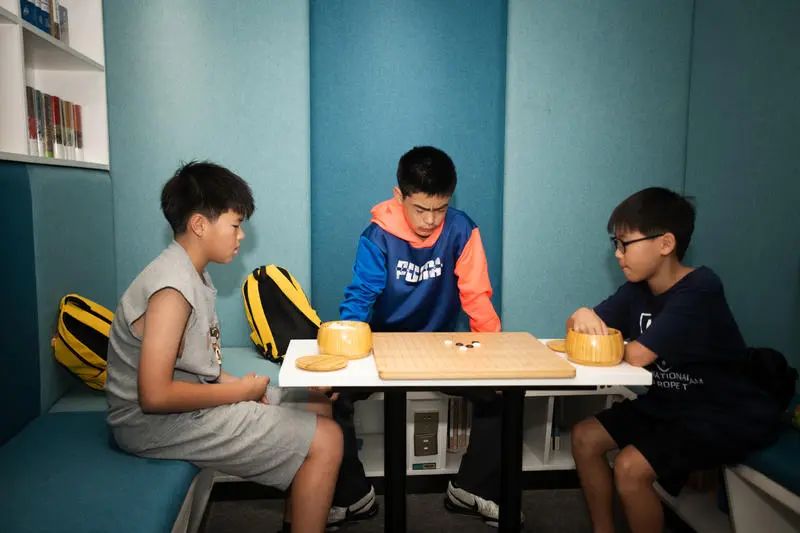 那天早上,每个人都进入了充满科技气息和人文底蕴的卢湾高级中学。在智能图文中心,露营者应邀挑战围棋和象棋机器人,感受人机游戏的魅力。面对算法强大的机器人“棋手”,几名露营者低声讨论对策,试图打破棋局。“三个臭皮匠顶着诸葛亮”的合作策略让现场的互动氛围格外热烈。