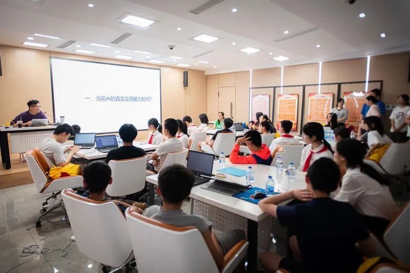 日前,美国华裔青少年科技创新探索夏令营“海创黄浦智汇Z世代”迎来了科技主题日。来自美国的中国青少年走进上海卢湾高级中学和上海黄浦区教育学院附属中山学校,现场参观了智慧校园。AI 以文化旅游为主题的科技文化创意工作坊,深入了解中国科技教育的快速发展,与学生交流互动,感受人工智能赋能下的文化创意和未来科技。