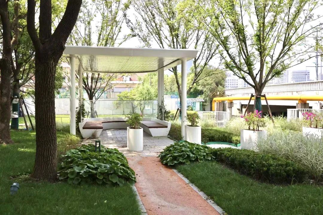 不仅如此,这个公园离周围的居住区很近。晚上,许多居民吃完晚饭后会来这里解暑。场地内还增加了凳子和休闲走廊,方便市民坐下来聊天。