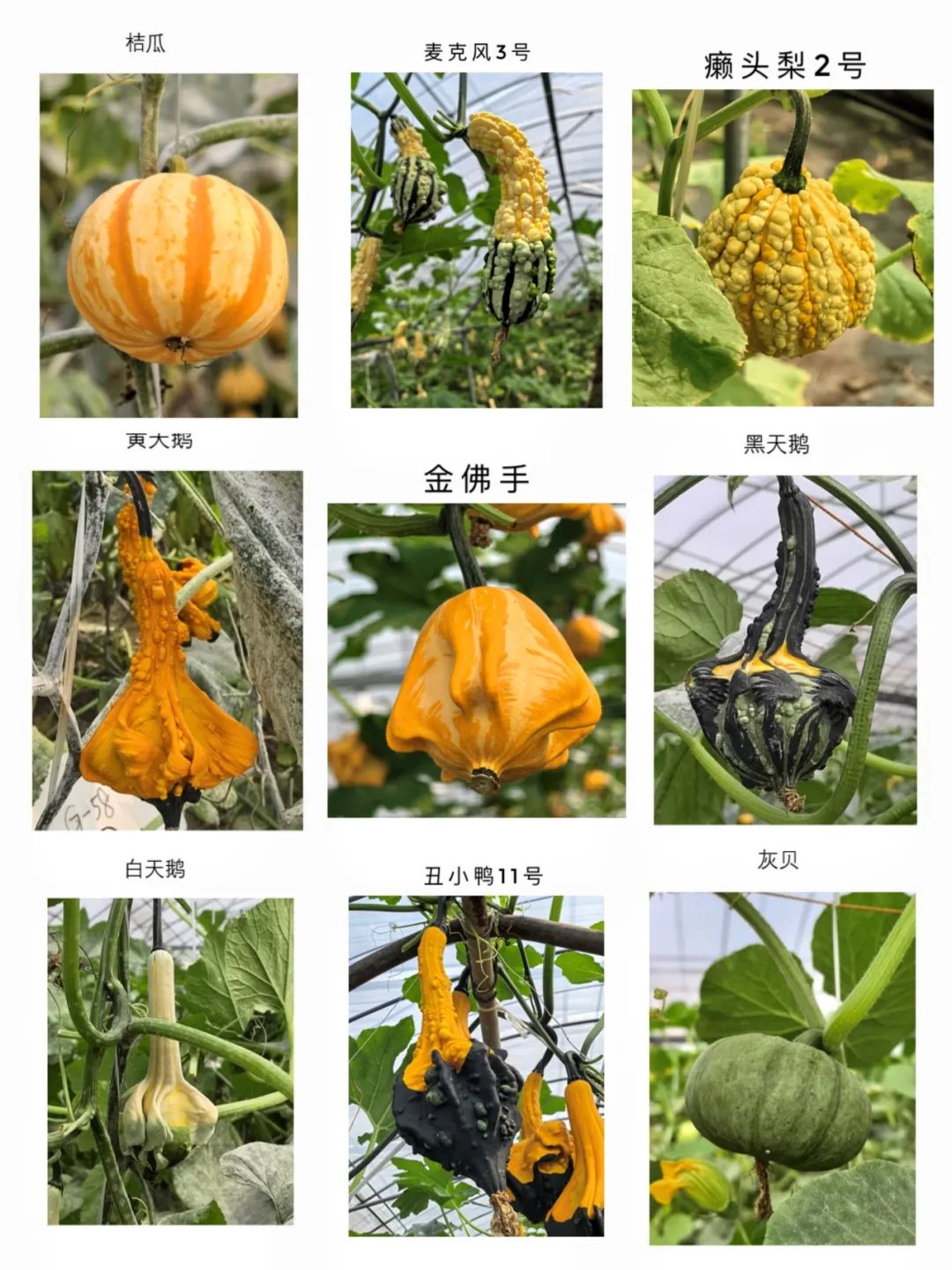 食用类型包括上海市南瓜评论专家推荐的灰贝1号南瓜,2025年浙江瓜菜新品种大会推荐的雪贝1号南瓜。这种水果粉又甜又糯,质量极佳。丑小鸭11号,麦克风3号,癞梨2号,金佛手...这些新的南瓜产品,外形奇特,色彩鲜艳,质地抽象,观赏性高,刷新了人们对南瓜物种的认知。