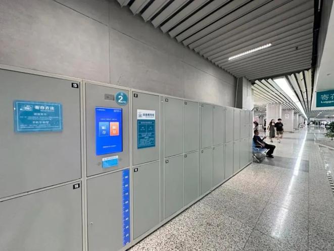 为满足旅客24小时行李存放需求,合肥南站推出24小时智能便民存放柜服务,在到达大厅4个出口处设置7个行李存放柜,在红枫站和党群服务中心旁设置2个行李存放柜,方便旅客就近存放行李。
