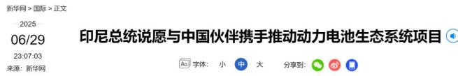 印尼总统表示愿意与中国合作伙伴携手推进动力电池生态系统项目。