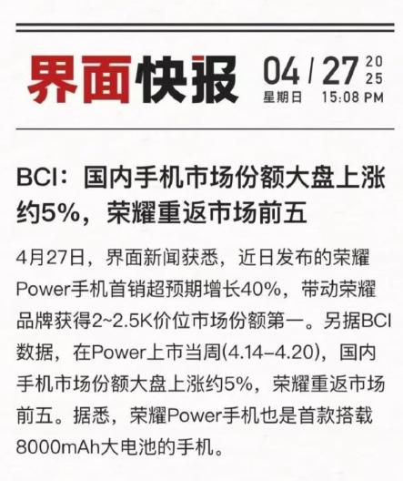 据站哥爆料,除了荣耀之外 Power,接下来荣耀还有一台中端走量机。
