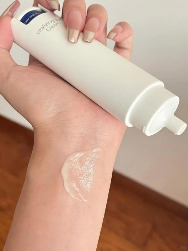 它的质地像小时候用的雪花膏一样丢失,需要先在手掌上搓热乳化成透明状,才能更好的吸收。