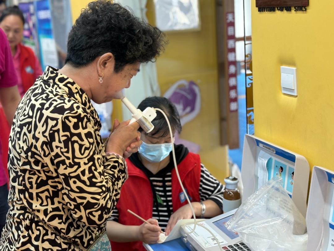 现场,专业人员使用先进的设备,一丝不苟地为居民完成各种检查。